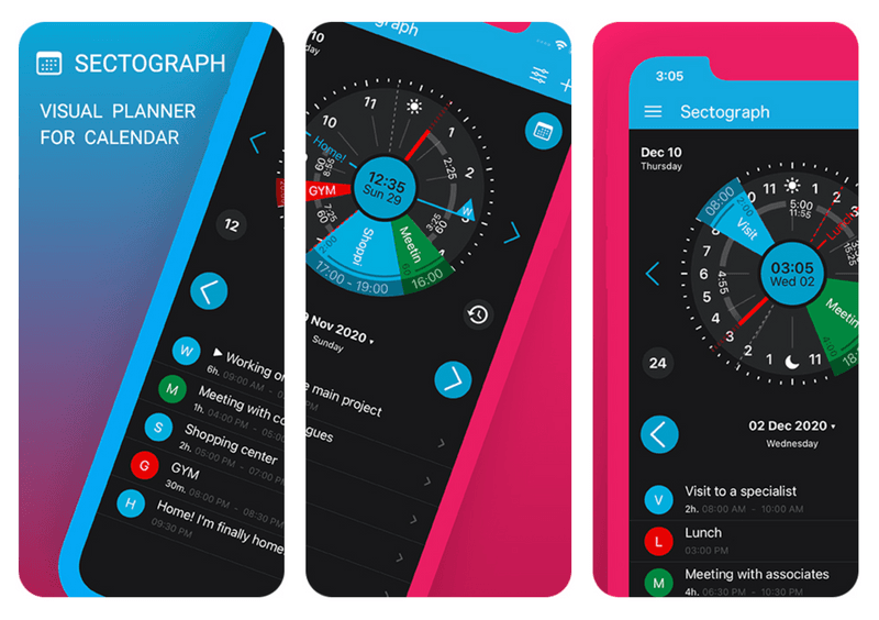 Sectograph is a daily planner that provides a different way to view your day. If you're a big fan of pie charts, then this app is for you. For some, viewing how their day is broken up on a pie chart, can help see time more clearly.