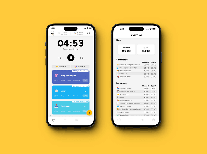 Put the Time Divider below your professional tasks and voilà, you know exactly when you're done with work and how much time you spent without any confusion. If you're in flow and want to enter Overtime you can easily do so and track the extra time spent.